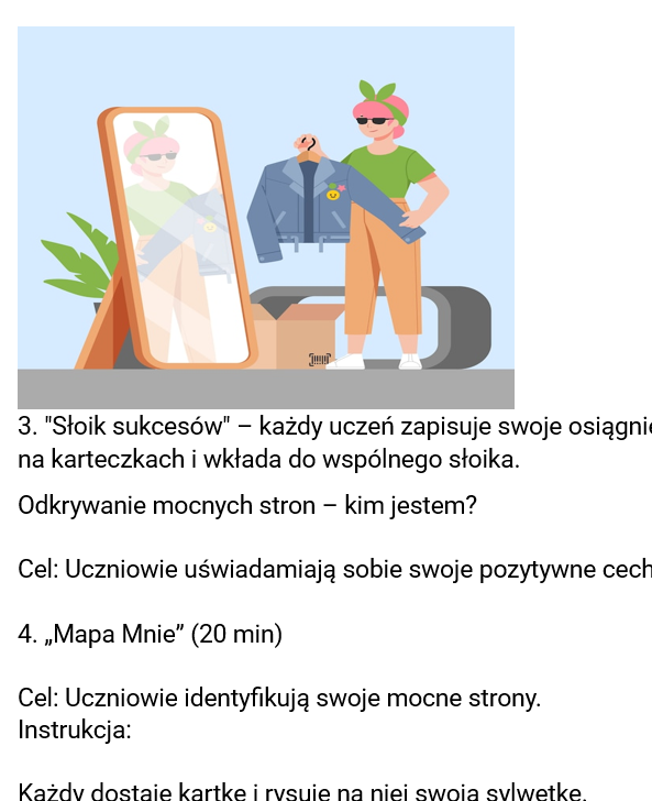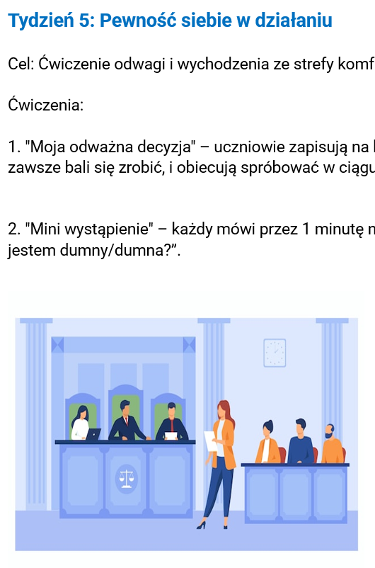To więcej niż scenariusz – to kompletny program, który pozwoli uczestnikom realnie wzmacniać swoją samoocenę i budować zdrowe poczucie własnej wartości!