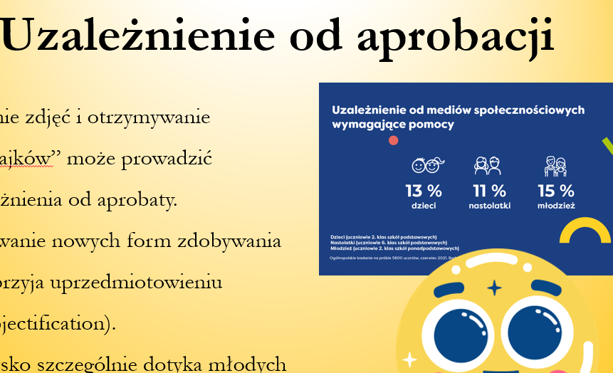 – uzależnienie od lajków i aprobaty rówieśników,
