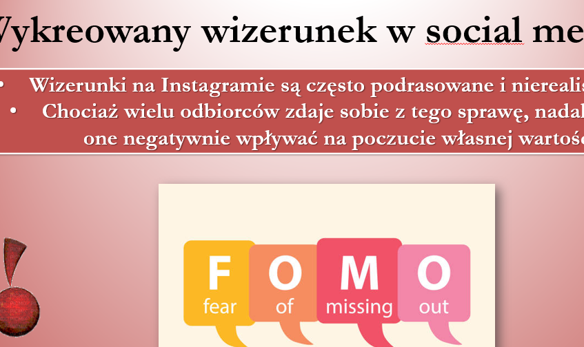 – presja wyglądu, FOMO, uzależnienie od aprobaty,