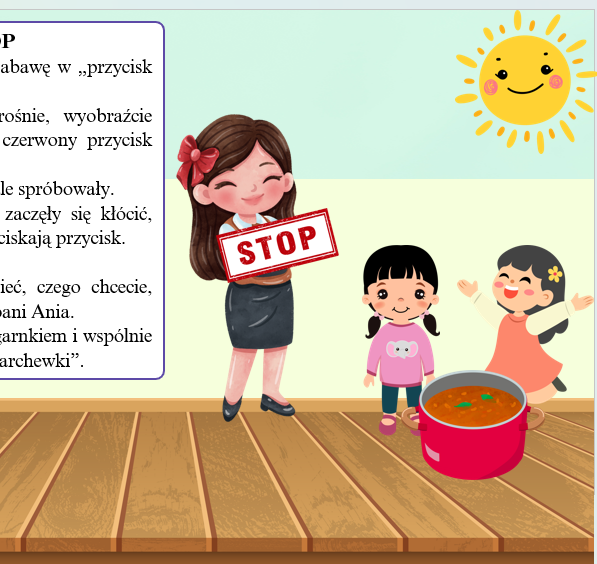 wprowadzają zabawy przeciwko złości („przycisk STOP”),