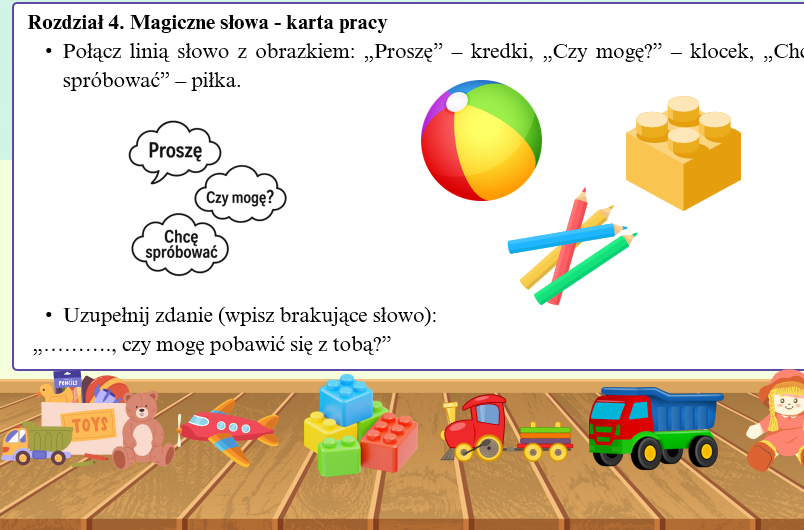 uczą magicznych słów („proszę”, „przepraszam”, „czy mogę?”),