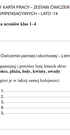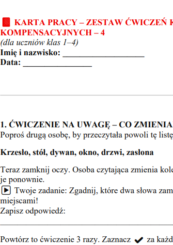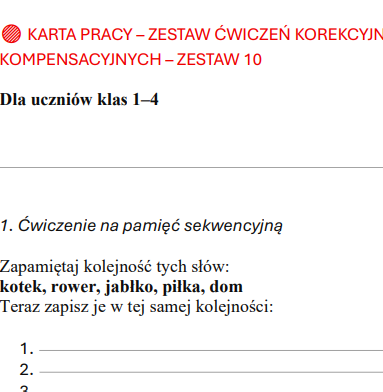 KARTY PRACY NA ZAJĘCIA KOREKCYJNO-KOMPENSACYJNE ZESTAW DLA KLAS 5-8