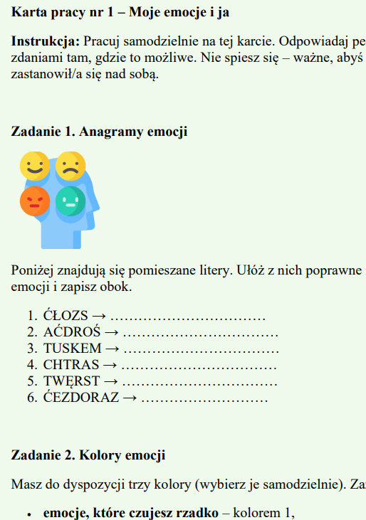 Napisz pierwszą opinię o „Karty pracy na zajęcia rozwijające kompetencje emocjonalno-społeczne dla kl.4-8 100 stron!!!” Anuluj pisanie odpowiedzi