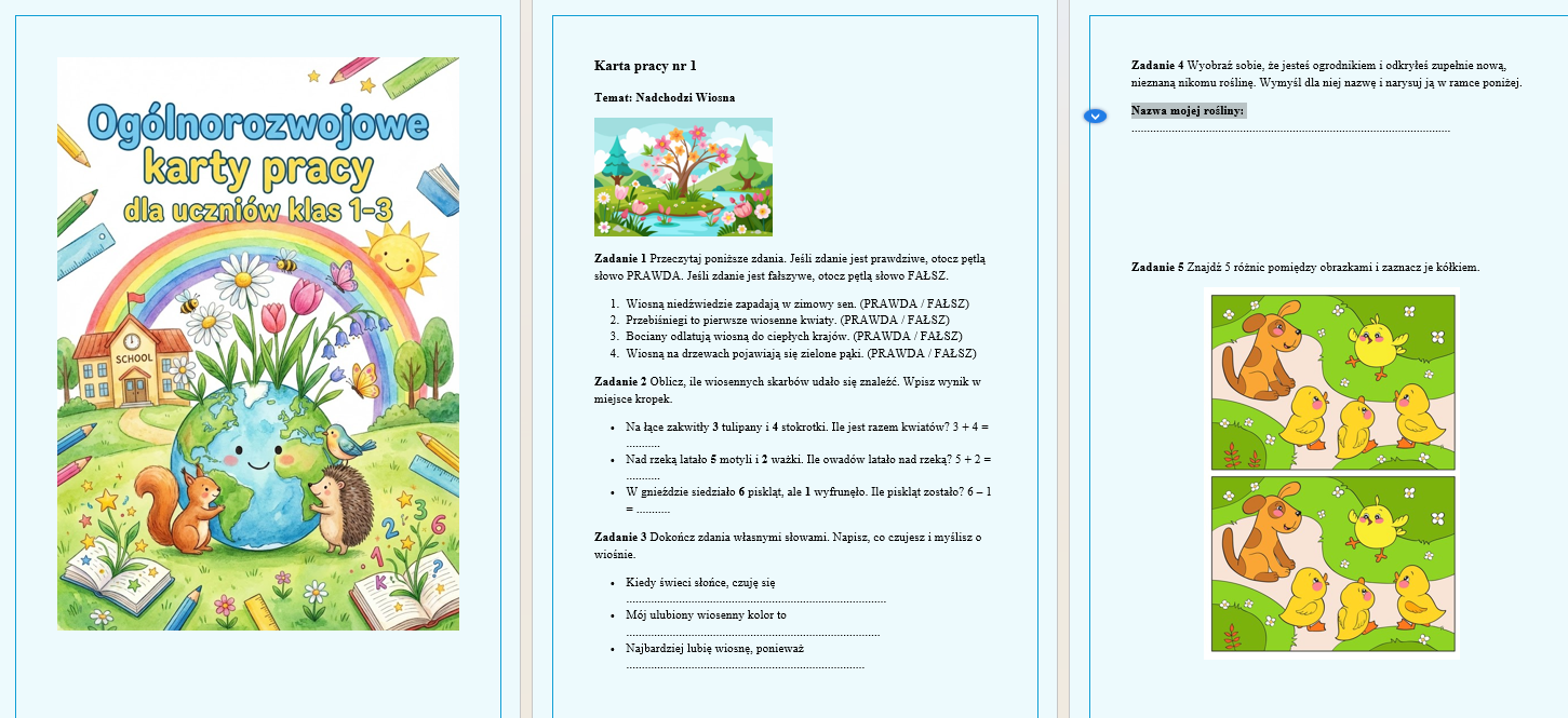 OGÓLNOROZWOJOWE Wiosenne karty pracy dla klas 1-3 67 stron