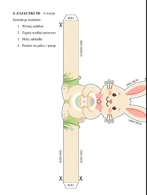 4. ZAJĄCZKI 3D – 6 wersji do wycinania i składania