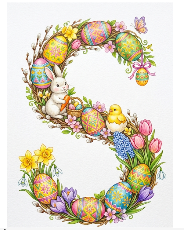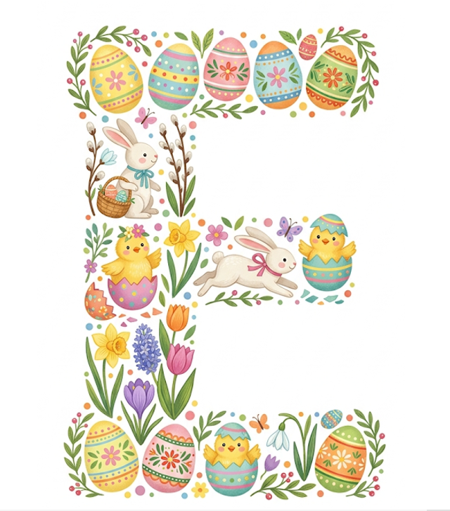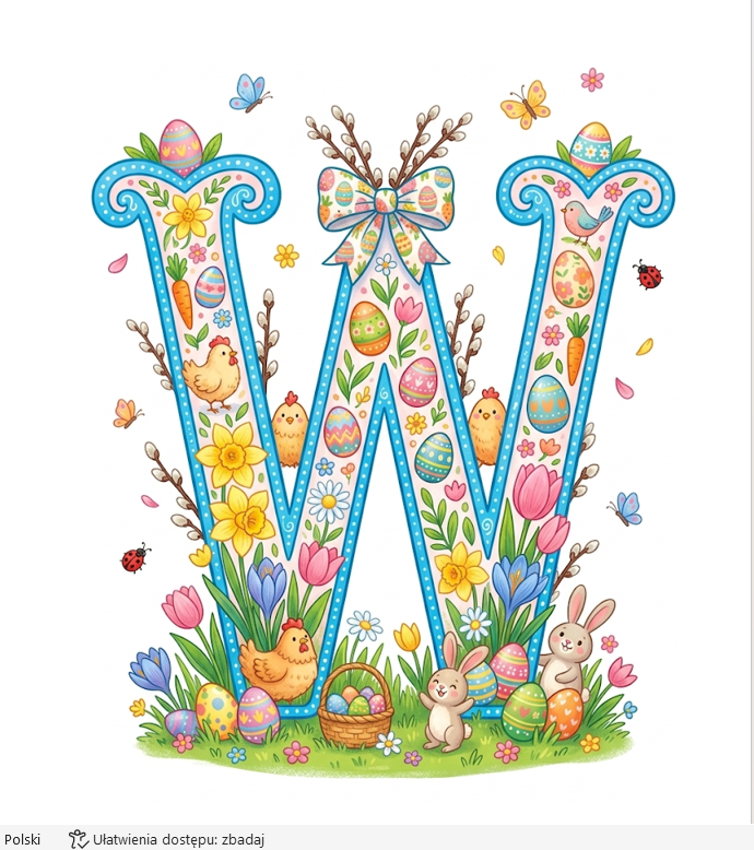 2. NAPIS „WESOŁEJ WIELKANOCY” – każda litera osobno + dekoracje