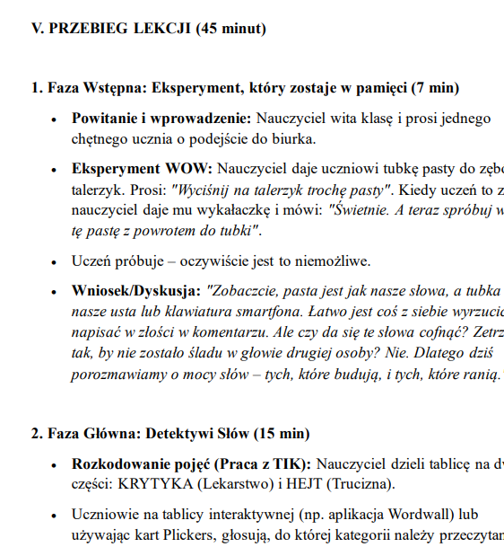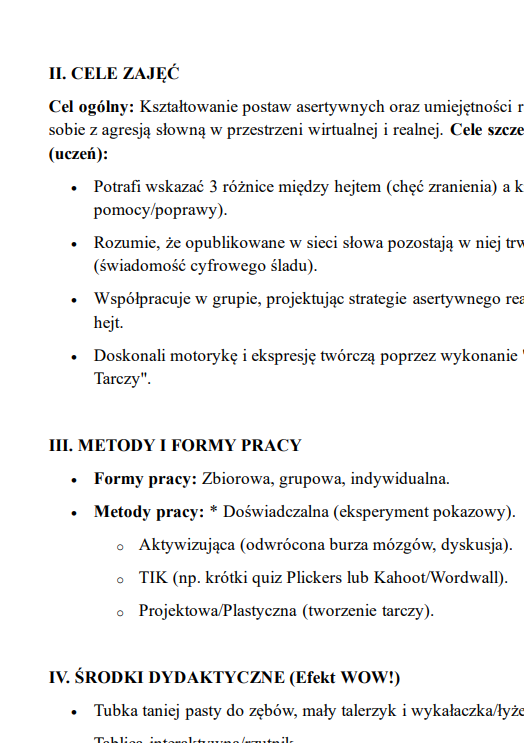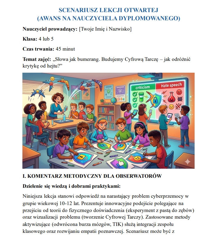 Scenariusz lekcji otwartej na nauczyciela dyplomowanego