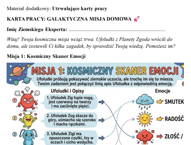 Dodatkowo pakiet zawiera gotowe materiały dla uczniów (karty pracy, kolorowanki), do pracy własnej i przemyśleń.