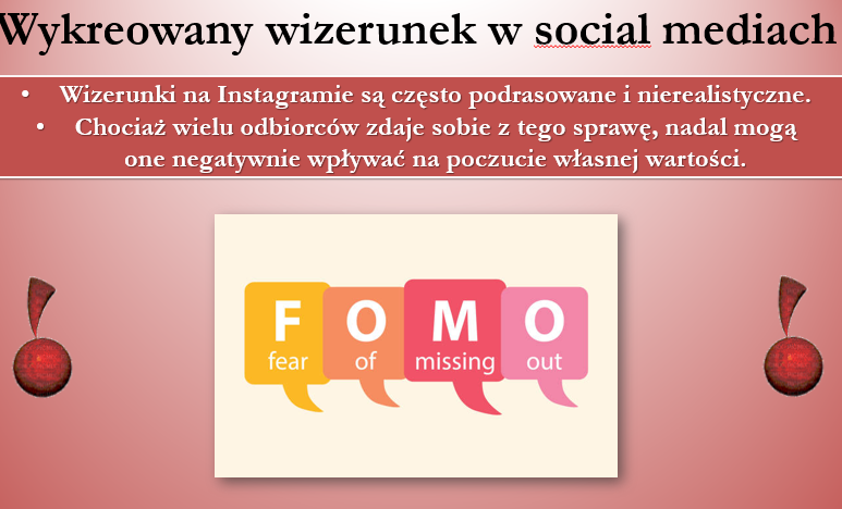 Gotowy materiał na zajęcia pokazujący realny wpływ social mediów na psychikę młodych ludzi. Uczniowie poznają mechanizmy działania platform (TikTok, Instagram, Facebook), zjawiska takie jak FOMO, uzależnienie od lajków czy ciągłe porównywanie się, a także ich skutki: zaniżoną samoocenę, stres, lęki i problemy w relacjach